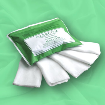 Салфетки марлевые медицинские стерильные изготовлены из высококачественной отбеленной хлопчатобумажной медицинской марли ( 100% хлопок). Стерилизация проводится радиационным методом. Стерильные салфетки используют на открытых ранах, чтобы защитить их от негативного воздействия окружающей среды. Они легко снимаются и не прилипают к ране. Салфетки применяются в качестве готовых операционно-перевязочных средств, для наложения повязок, осушения ран, при перевязках и операциях, для тампонады с целью остановки кровотечения и дренирования, закрепления перевязочного материала, давления на какую-нибудь часть тела (в основном, для остановки кровотечения), предупреждения отека тканей или удержания конечности либо иной части тела в неподвижном состоянии, а также для защиты раны или измененной поверхности кожи от воздействия внешней среды. Салфетки фиксируются бинтом или медицинским пластырем. Салфетки могут применяться в клинических, поликлинических, полевых и в домашних условиях.