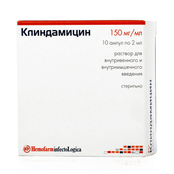 Фармгруппа: Антибиотик-линкозамидДата регистрации: 10.06.2009. Окончание регстрации: .Описание:Раствор для внутривенного и внутримышечного введения: прозрачный бесцветный или слегка желтоватый раствор. Упаковка:Раствор для внутривенного и внутримышечного введения, 150 мг/мл. По 2 мл раствора в ампулу бесцветного стекла I гидролитического класса. На ампулу нанесены: краской белого цвета - первое кольцо, краской синего цвета - второе кольцо и точка для разлома ампулы. По 5 ампул в контурную ячейковую ПВХ - упаковку с покрытием из алюминиевой фольги.2 контурные ячейковые упаковки вместе с инструкцией по применению в пачку картонную. Срок годности:2 года.Не использовать по истечении срока годности, указанного на упаковке. Владелец рег.удостоверения:Хемофарм А.Д. Производитель:HEMOFARM, A.D.. Представительство:ХЕМОФАРМ А.Д..
