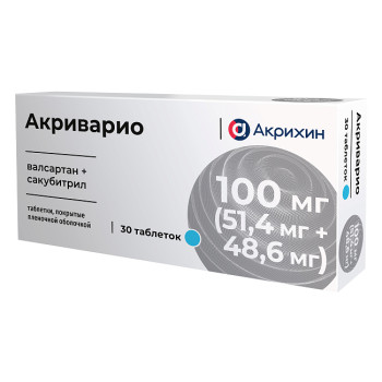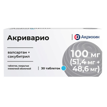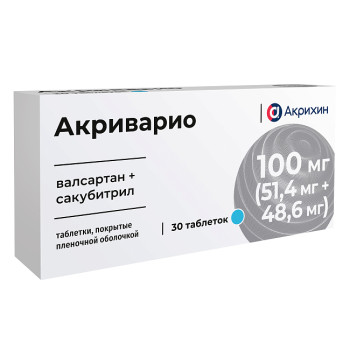 После приема внутрь комплекс валсартана и сакубитрила распадается на валсартан и сакубитрил, который затем метаболизируется с образованием метаболита – сакубитрилата; концентрации названных веществ в плазме крови достигают максимума через 2, 0.5 и 1.5 ч соответственно. Абсолютная биодоступность валсартана и сакубитрила после приема внутрь составляет 23% и ≥ 60% соответственно. Валсартан в составе препарата Акриварио обладает большей биодоступностью по сравнению с другими таблетированными формами.
