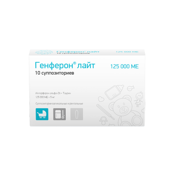 ГЕНФЕРОН® ЛАЙТ - комбинированный препарат, действие которого обусловлено компонентами, входящими в его состав. Оказывает местное и системное действие. В состав препарата Генферон® Лайт входит рекомбинантный человеческий интерферон альфа-2b, вырабатываемый штаммом бактерии Escherichia coli, в которую методами генной инженерии введен ген интерферона альфа-2b человека. Интерферон альфа-2b оказывает противовирусное, иммуномодулирующее, антипролиферативное и антибактериальное действие. Противовирусный эффект опосредован активацией ряда внутриклеточных ферментов, ингибирующих репликацию вирусов. Иммуномодулирующее действие проявляется, в первую очередь, усилением клеточно-опосредованных реакций иммунной системы, что повышает эффективность иммунного ответа в отношении вирусов, внутриклеточных паразитов и клеток, претерпевших опухолевую трансформацию. Это достигается за счет активации CD8+ Т-киллеров, NK-клеток (естественных киллеров), усилении дифференцировки В-лимфоцитов и продукции ими антител, активации моноцитарно-макрофагальной системы и фагоцитоза, а также повышении экспрессии молекул главного комплекса гистосовместимости I типа, что повышает вероятность распознавания инфицированных клеток клетками иммунной системы. Активизация под воздействием интерферона лейкоцитов, содержащихся во всех слоях слизистой оболочки, обеспечивает их активное участие в ликвидации патологических очагов: кроме того, за счет влияния интерферона достигается восстановление продукции секреторного иммуноглобулина А. Антибактериальный эффект опосредован реакциями иммунной системы, усиливаемыми под влиянием интерферона. Таурин способствует нормализации метаболических процессов и регенерации тканей, обладает мембраностабилизирующим и иммуномодулирующим действием. Являясь сильным антиоксидантом, таурин непосредственно взаимодействует с активными формами кислорода, избыточное накопление которых способствует развитию патологических процессов. Таурин способствует сохранению биологической активности интерферона, усиливая терапевтический эффект применения препарата. Фармакокинетика: При ректальном введении препарата отмечается высокая биодоступность (более 80%) интерферона, в связи с чем достигается как местное, так и выраженное системное иммуномодулирующее действие: при интравагинальном применении за счет высокой концентрации в очаге инфекции и фиксации на клетках слизистой оболочки достигается выраженный местный противовирусный, антипролиферативный и антибактериальный эффект, при этом системное действие за счет низкой всасывающей способности слизистой оболочки влагалища незначительное. Максимальная концентрация интерферона в сыворотке крови достигается через 5 часов после введения препарата. Основным путем выведения α-интерферона является почечный катаболизм. Период полувыведения составляет 12 часов, что обусловливает необходимость применения препарата 2 раза в сутки.