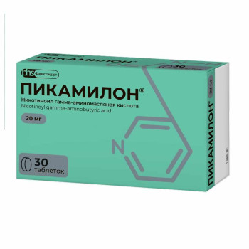 Состав:Пикамилон или 20,00 мг или 50,00 мг N-никотиноил-гамма-аминомасляной кислоты натриевая соль Вспомогательные вещества: крахмал картофельный - 18,70 мг или 46,78 мг, крахмал кукурузный - 0,60 мг или 1,47 мг, магния гидроксикарбонат (магния карбонат основной) - 15,53 мг или 38,82 мг, сахароза - 42,55 мг или 106,38 мг, кальция стеарат - 1,00 мг или 2,50 мг, тальк - 1,62 мг или 4,05 мг.