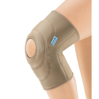 Бандаж имеет валик-кольцо с отверстием, который ограничивает подвижность коленной чашечки.